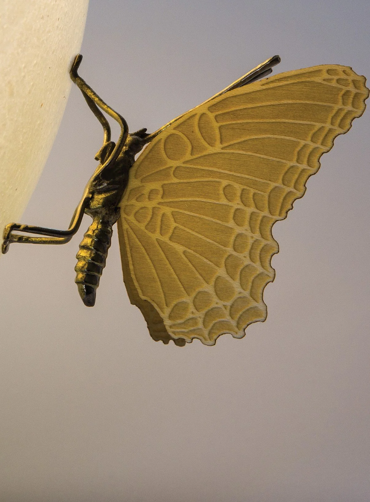 Antique mirror, fiberglass, wooden bronze butterflies.